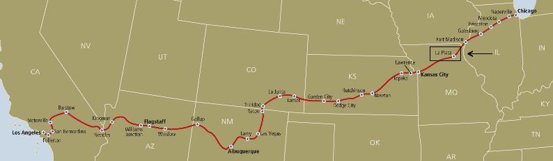 Route of the Amtrak Southwest Chief (click here for a larger image)