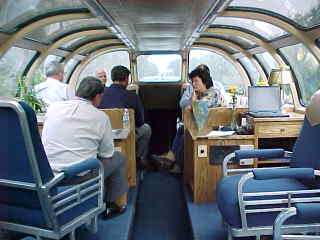 Some cars just had family and friends on board, others had paying guests. They were all ever so friendly and gracious. Everyone trying to outdo the other in kindness. It's easy to make new friends and strike up great conversations. It's so interesting to walk up the steps to the dome areas, to appreciate the luxury paneling and furniture and fine china and other goods that these lovely cars offer. You get to see your country as it really is as well. For people coming in from foreign countries there is no better way to fully see and appreciate what America offers. This bountiful land of greatness will surprise you with its' vastness and beauty. Why travel elsewhere when there is so much to see and do in this fashion.